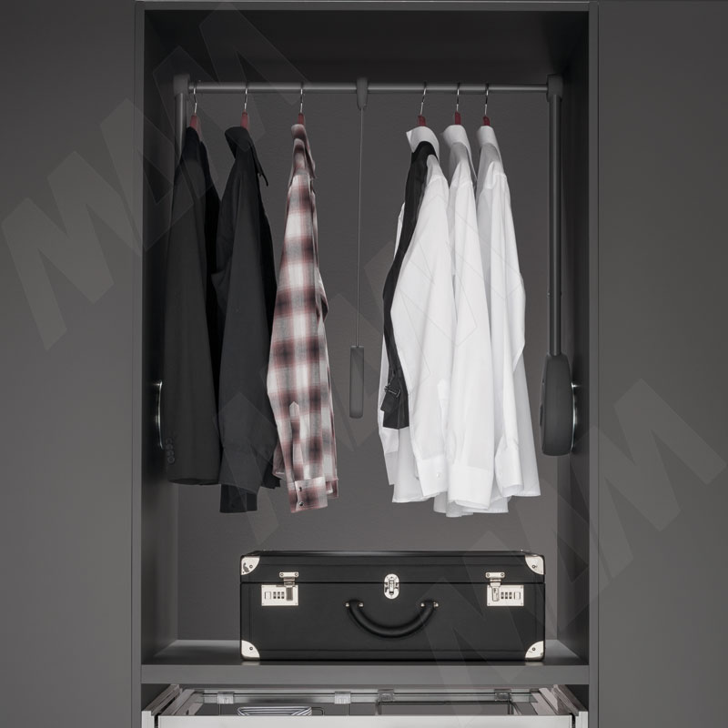 Пантографы — это подъемные механизмы для удобного использования верхних секций гардероба. Они позволяют опускать вешала на комфортную высоту, обеспечивая лёгкий доступ к одежде.